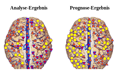 Dieses Bild zeigt das Gehirn von oben, wobei die Analyse im Bild links sehr oft die Werte 3 und 4 angezeigt. Bei der tieferen Abfrage mit dem Bewusstseins-Modul wurde als Ursache starker STRESS und Anspannung im Gehirn angezeigt. Der Kunde bestätigt im Gespräch eine stressige Lebenssituation. Inwieweit ein harmonisierender SOFORT-IMPULS mit unserem System hilfreich sein kann, zeigt der Vergleich mit dem Prognose-Modul. Im Bild rechts sehen Sie das Ergebnis der Prognose. In diesem Fall verbessern sich fast alle Werte bereits bei der ersten Sitzung NACHWEISBAR. Nichts bleibt dem Zufall überlassen. Die Erfahrung zeigt, dass sich viele Kunden am Folgetag ENTSPANNTER FÜHLEN.